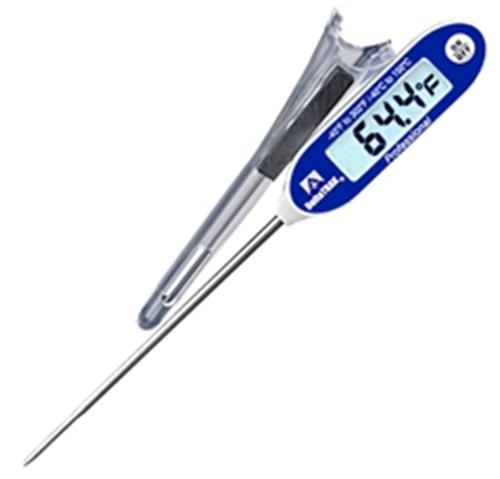 11060/11063 (NSF認證),反應迅速而準確,是食品行業(yè)用于檢測溫度,控制產(chǎn)品質(zhì)量的理想工具。LCD顯示屏尺寸為1.5 X0.5(38mm X 12.7mm)顯而易見(jiàn)。達到IP56的防水性能標準。收窄的不銹鋼探針0.1英寸/23mm,比市面上的型號反應快3倍。